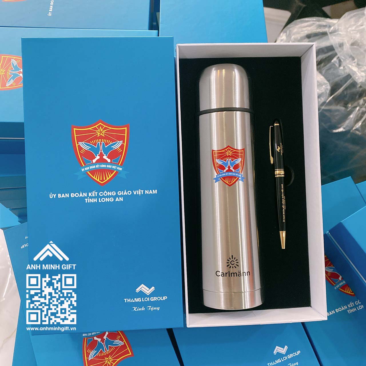 Công ty Quà tặng Anh Minh chuyên sản xuất bình giữ nhiệt quà tặng giá rẻ. Nhận in logo bình giữ nhiệt, in hình lên bình giữ nhiệt theo yêu cầu khách hàng.